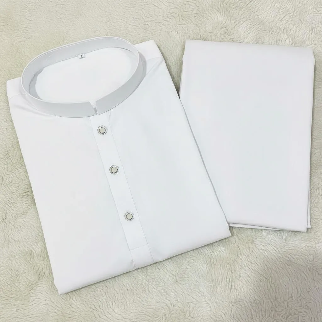 • Gender: Men’s• Fabric: Wash And Wear• Pattern: Plain• Neck Type: Ban Collar• Sizes: Standard Size• Number Of Pieces: 2 Pcs• Package Includes: 1 x Kurta Pajama• Shirt Length: 42 Inches• Shirt Chest: 21 Inches• Shirt Shoulder: 15 Inches• Arm Length: 11 Inches• Trouser Length: 39 Inches• Trouser Waist: 36 Inches• Trouser Hip: 23 Inches• Color: White• Mans Casual Kurta Pajama Suit• Stuff : Wash n wear (Soft fabric)• Size Measurement• Small• Chest 19/20• Length 39• Trouser length 39• Medium• Chest 21/22• Lenght 42• Trouser lenght 40• Note: There might be an error of 1-3 cm due to manual measurement, and slight color differences may occur as a result of varying lighting and monitor effects.• Product Code: MZ2098200555DK