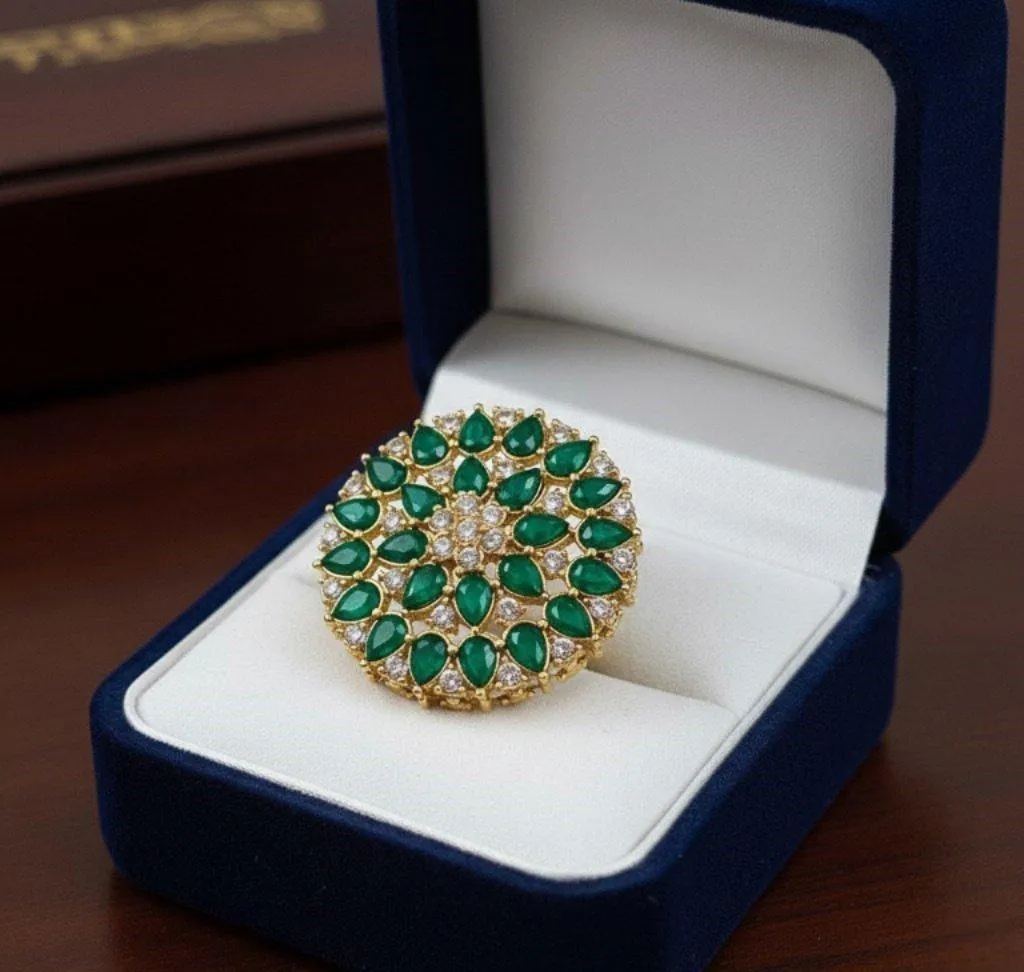 • Material: Alloy• Plating: Gold Plated• Number Of Pieces: 1 Pc• Color: Black, Green, Maroon• Package Includes: 1 x Adjustable Ring• Note: Keep jewelry dry, away from chemicals. Store separately in a soft pouch. There might be a slight color difference due to different light and monitor effects.
