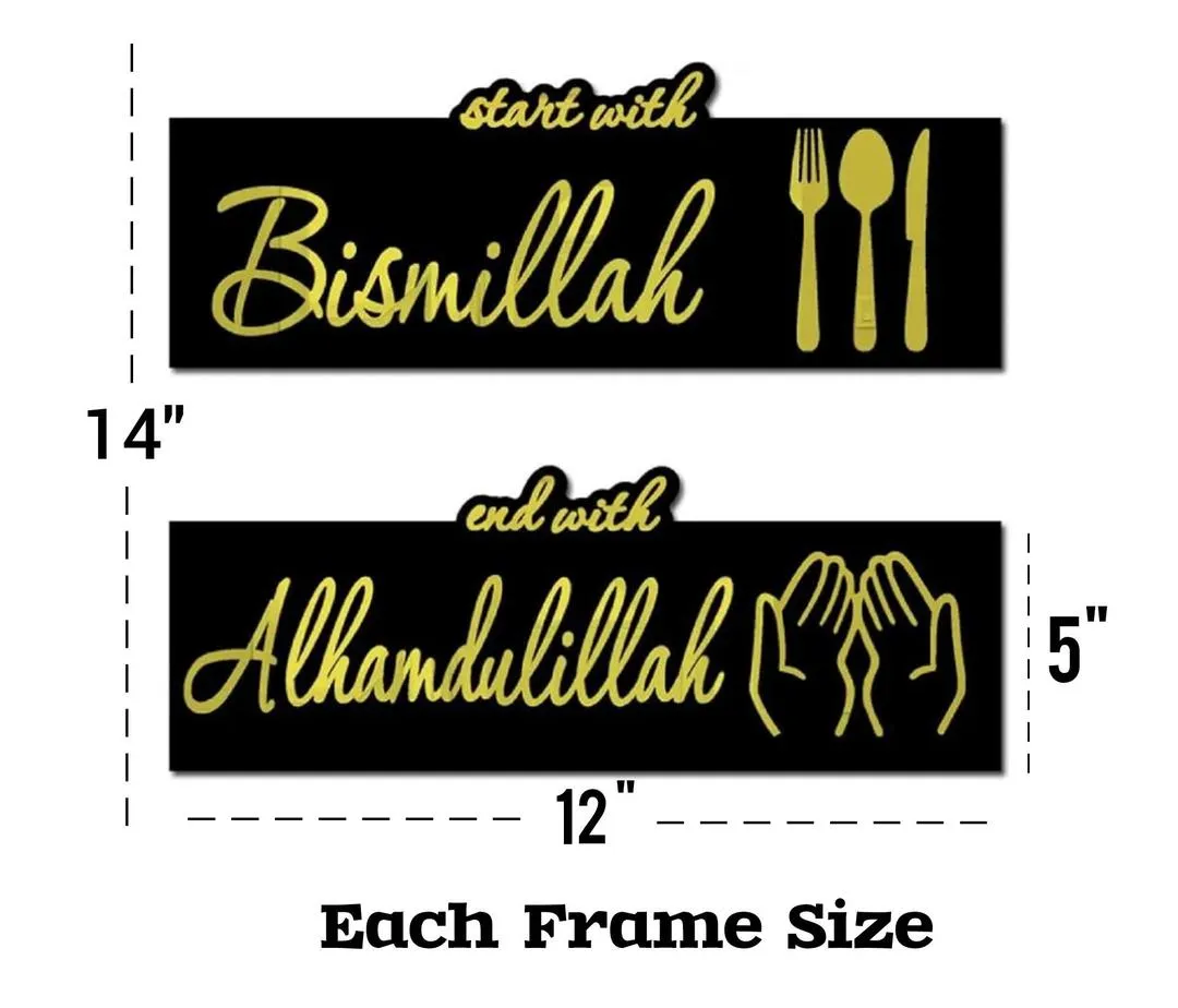 • Material: MDF• Number Of Pieces: 2 Pcs• Product Design: Allah Muhammad Design• Product Feature: Adds Ambiance And Style To Any Space• Color: Black• Package Includes: 1 x Wall Hanging• Length: 5 Inches• Width: 12 Inches• Height: 3 mm• Color: Yellow & Black Piece: Set of Two (Start With Bismillah + End With Alhamdulillah) Dimensions for each : ? 12 x 5 inches• Material: Wooden• Note: There might be an error of 1-3 cm due to manual measurement, and slight color differences may occur as a result of varying lighting and monitor effects.