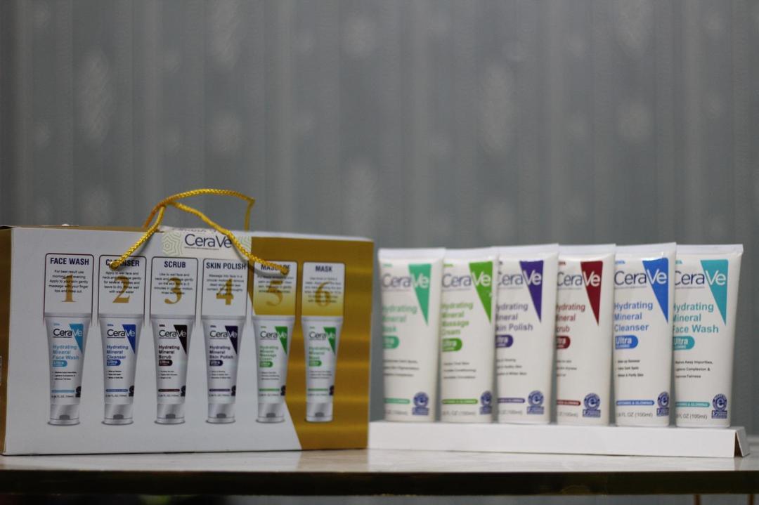 • Material: Cream• Texture: Cream• Skin Types: All Skin Types• Product Feature: Whitening, Whitening And Brightening, Brightening, Dead Skin Remover, Hydrating, Nourishing, Glowing, Dullness, All In One – Scrub, Mask, Wash• Package Includes: 1 x Facial Kit• The CeraVe Hydrating Mineral Facial Kit is a comprehensive skincare set designed to provide hydration and protection for your skin. Infused with essential ceramides, hyaluronic acid, and niacinamide, each product in this kit helps restore the natural barrier of your skin, ensuring a healthy complexion.• Step 1: Hydrating Mineral Cleanser Ultra• Use: Start your skincare routine with the cleanser.• Take a small amount of the cleanser in your hands.• Apply it to your damp face and massage gently in circular motions.• Rinse thoroughly with lukewarm water.• Note: Before using any new cosmetic product, perform a patch test on a small skin area. Verify ingredients for allergies and follow package warnings and directions.•